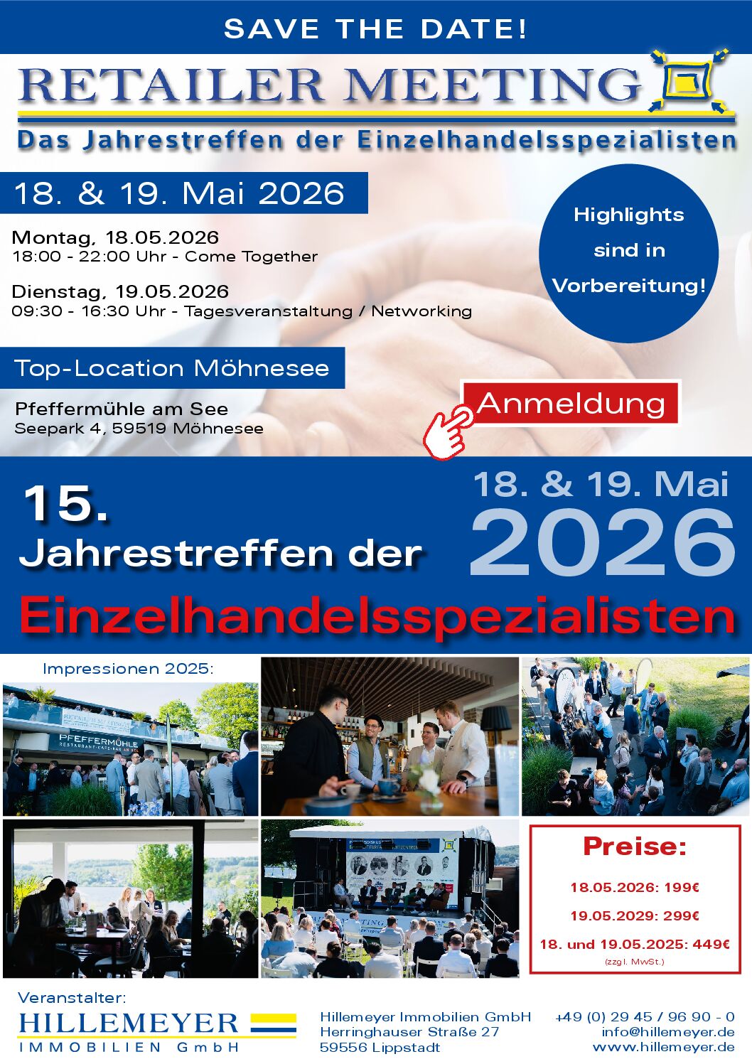 Mehr InformationenAm 18. und 19. Mai 2026 ist es wieder so weit: Das 15. Retailer Meeting findet erneut am malerischen Möhnesee statt!